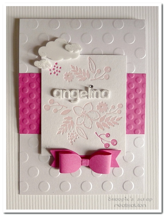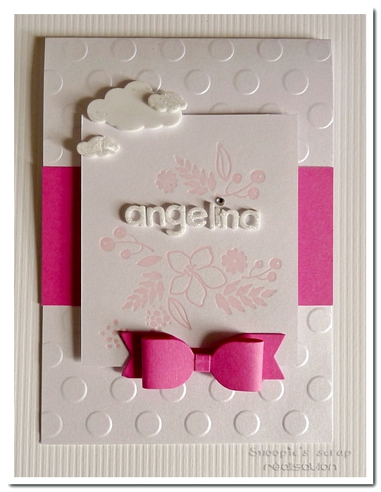 faire-part, naissance, bébé, fille, garçon, jumeaux, celebrate, celebrer, relied, embossage, 3d, letterpress, nuage, noeud, paillettes, Angelina.