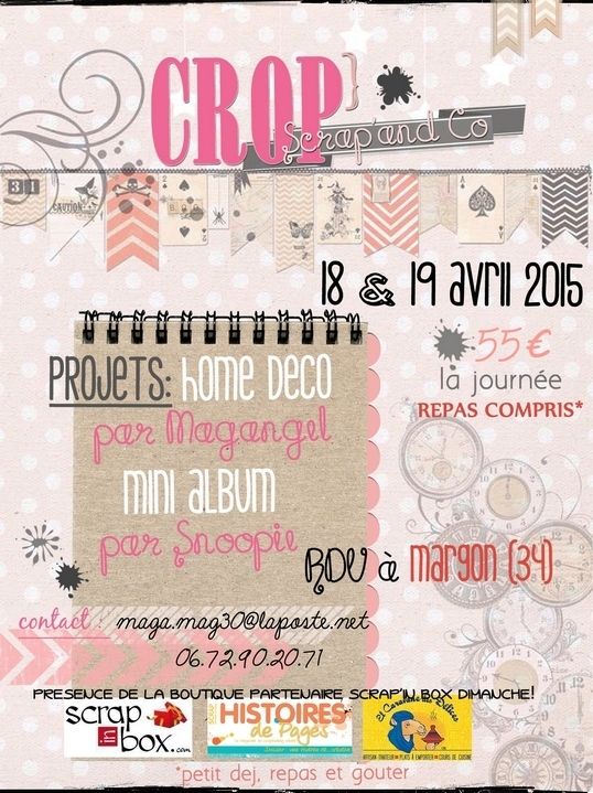 après l’aperçu du cadre de la crop du 25.04.15, voici l’aperçu du mini-album dont j’animerai un atelier le 19 avril prochain pour l’association Scrap and Co! Magangel animera un atelier home déco le 18 avril.