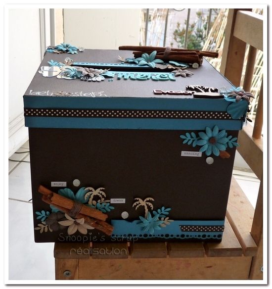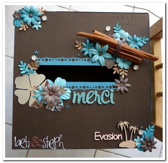 maintenant que vous avez vu leur livre d’or et leur porte-alliances, je vous laisse découvrir leur urne assortie. Les futurs mariés avaient choisis un format carré et souhaitez leurs prénoms et « merci » sur le dessus.