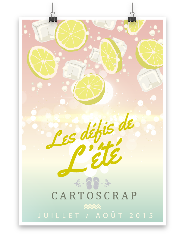 C’est aujourd’hui que les défis de l’été chez Cartoscrap commencent! N’hésitez pas à participer, et vous pourrez peut-être tenter de gagner (par tirage au sort) un bon d’achat dans la boutique 🙂
