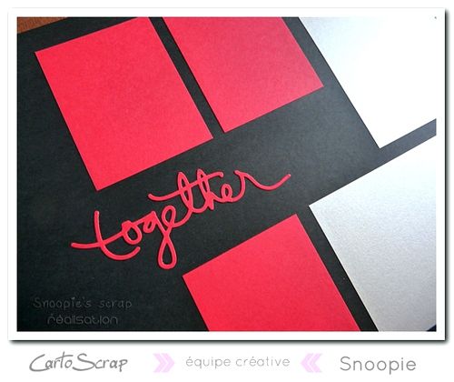 Liste du matériel : Ruban de fleurs rouges – American Crafts, pochoirs de gaufrage Sizzix – Debossing – Shadow Press – Sentiments, dies Heidi Swapp – Happy et Lovely, die MetaliKs – Together, die Memory Box – Joy script, die Papersmooches – Borthday words, dies Florilèges Designs Sweety Cuts – Les Pockets – pochette onglet rectangle et les solos – Instants uniques, Glossy Accent, strass Snowflake, strass adhésifs 5mm – rouge, wood veneer – hearts, ruban organza rouge à pois blancs, ruban organza gris à pois blanc, rubans.