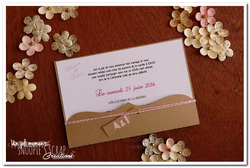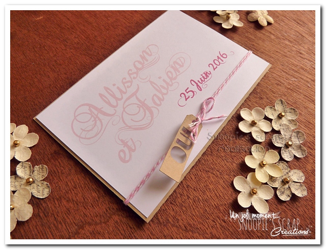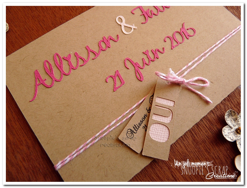 *Un faire-part identique avec une ficelle rose Baker’s Twine: