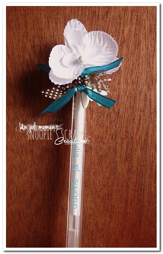 Je continue aujourd’hui avec le stylo accordé au coussin d’alliances et livre d’or que vous pouvez retrouver sur le blog.