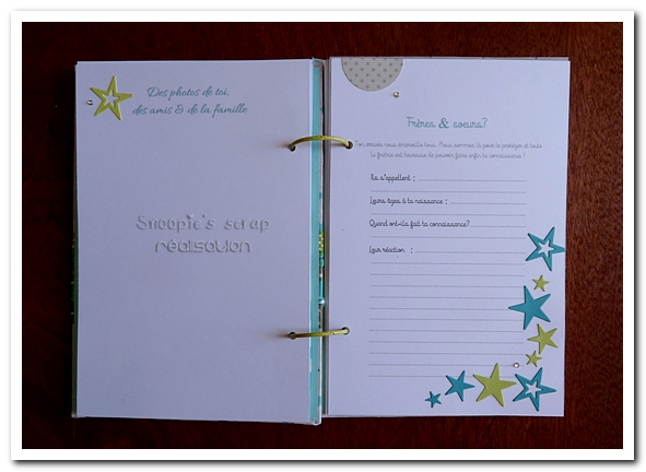livre naissance, baptême, fille, garçon, bébé, album, cadeau, turquoise, vert anis, étoiles, star