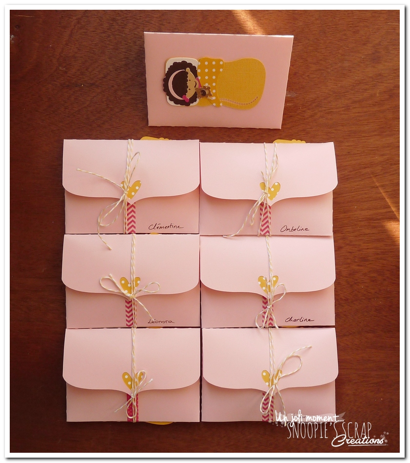 J’ai donc, comme à mon habitude (on m’a dit que je les avais mal habituées! Oops!), créé des invitations + leur enveloppes pour les copines de ma puce.