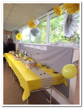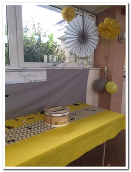 Une urne dans l’esprit de celle d’Arthur mais dans ses couleurs. Avec quelques rajouts de fanions.