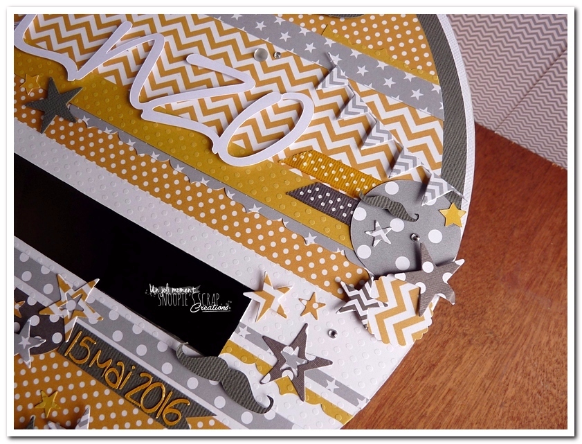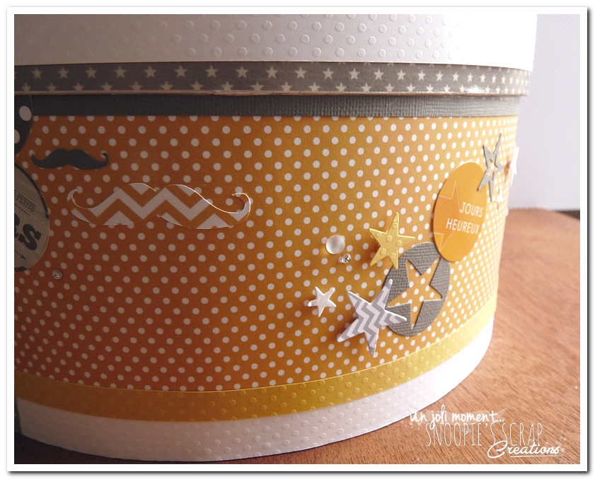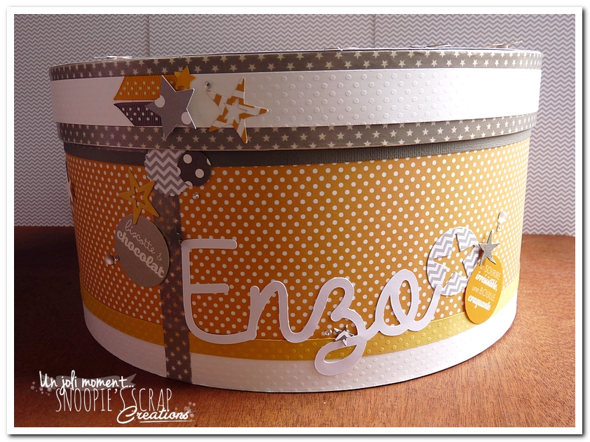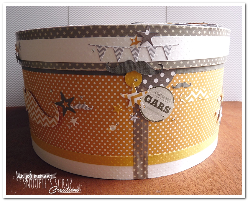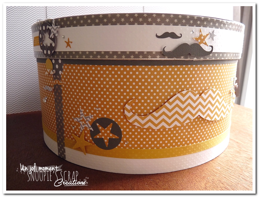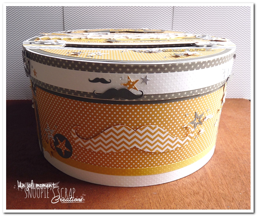 urne, tirelire, boîte à rêves, boîte à sous, baptême, communion, mariage, pacs, parrainage civil, baptême religieux, baptême civil, mairie, décoration, événements, enzo, moutarde, jaune, gris, anthracite, taupe, argent, moustache, chevrons, fanions, étoiles, ronde.