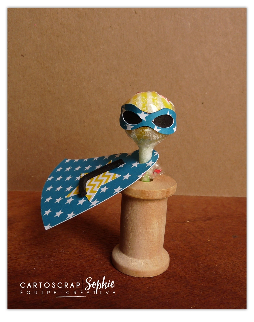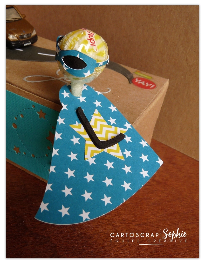L’idée de la boite et sucette sur Pinterest, c’était parfait pour rester dans le thème des Super-Héros!