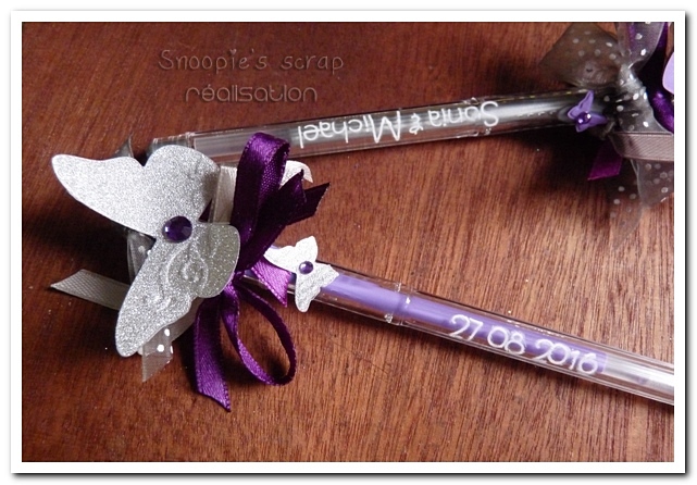 On continue avec les stylos assortis au livre d’or, personnalisés par les prénoms & date.