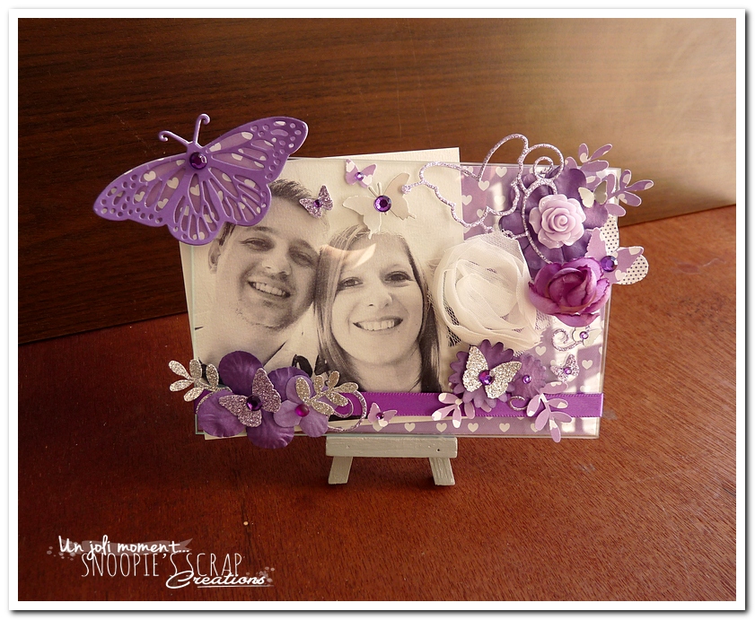 voici un petit cadre décoré pour accompagner le reste des réalisations, avec une photo des mariés.