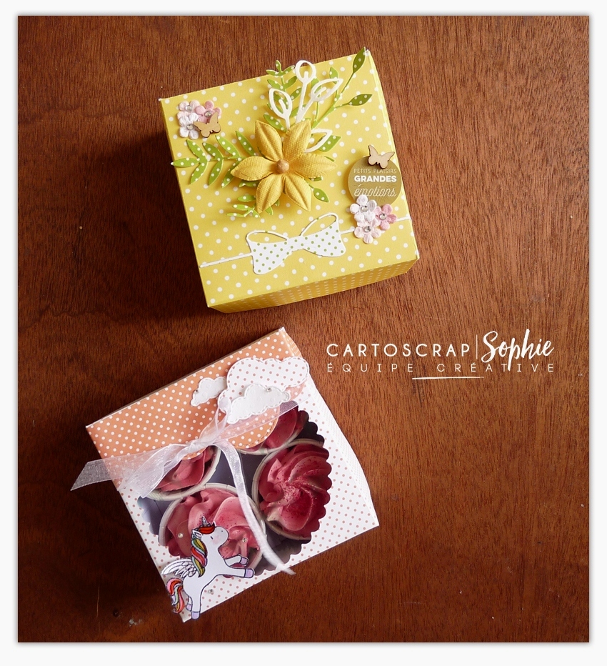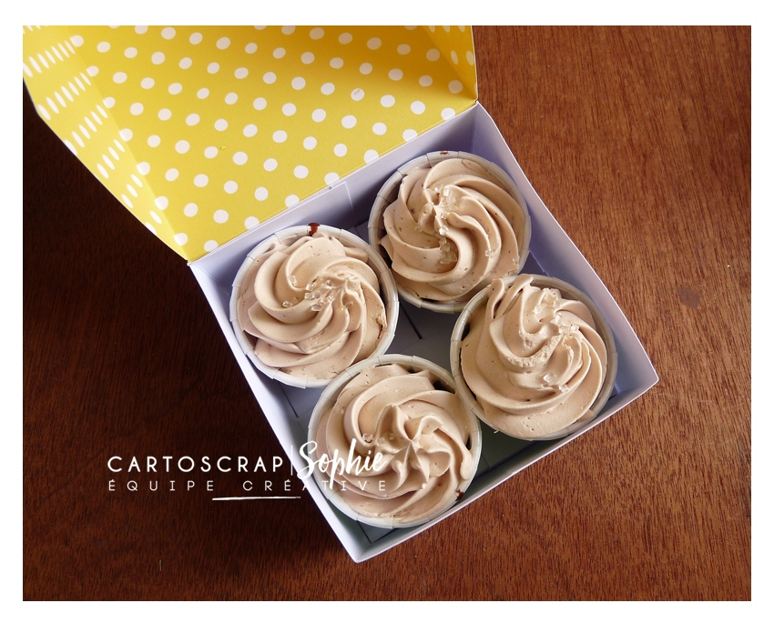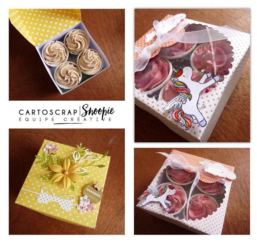 Retrouvez mes 2 petites boîtes à mini cupcakes, créées pour Cartoscrap & offertes à une amie & sa petite fille, copine de ma mimi d’amour.