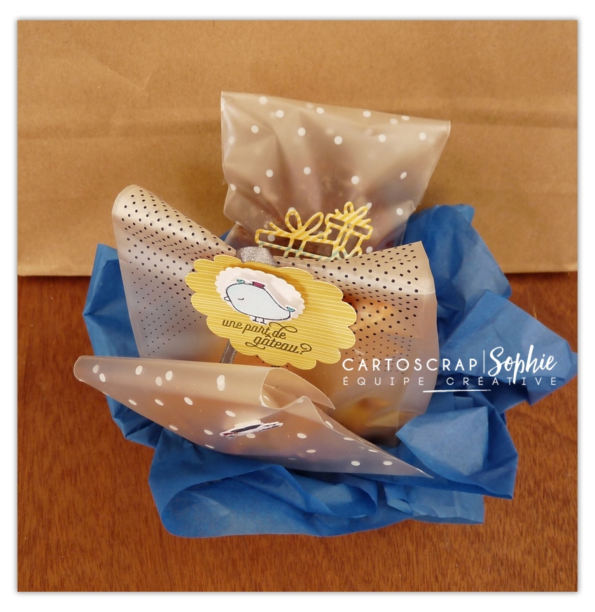 Des petites sucreries venant de la Cure Gourmande pour le grand gourmand qu’il est, les dies & tampons sont parfaits pour décorer les petites pochettes.