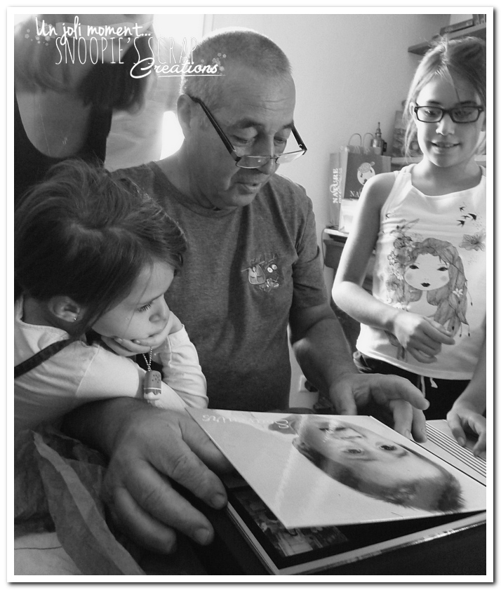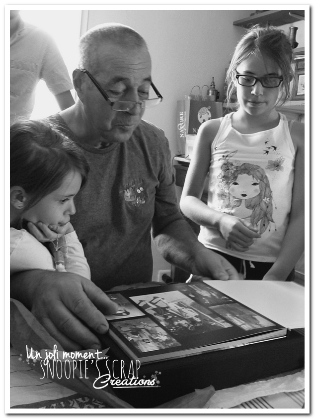 Et également pour accompagner le sac kraft où contenait un livre photo regroupant des très vieilles photos ainsi que des photos plus récentes. Un livre où j’ai passé énormément de temps à préparer (eh oui il n’était pas scrappé celui-ci, j’avoue! Psychologiquement c’était plus facile aussi car cela aurait été difficile de scrapper les photos de mes grands parents 😥 #GrosManque ).