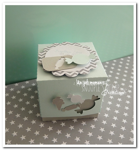 D’abord une version avec multitude de bonbons, et une étiquette apposée sur un rond scallopped. – version happy candy multi.