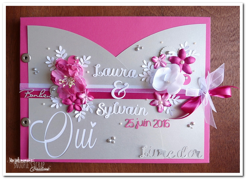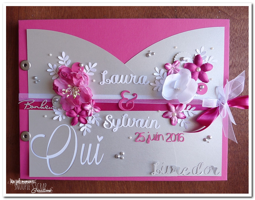 livre d’or de mariage, wedding book, argent & fushia, fuchsia, fuchia, fuschia, rose, blanc, ruban, strass,fleurs, pivoines, roses, romantique,ou, Laura & Sylvain, aurélie & gaël, faire-part de mariage OUI, friendly.