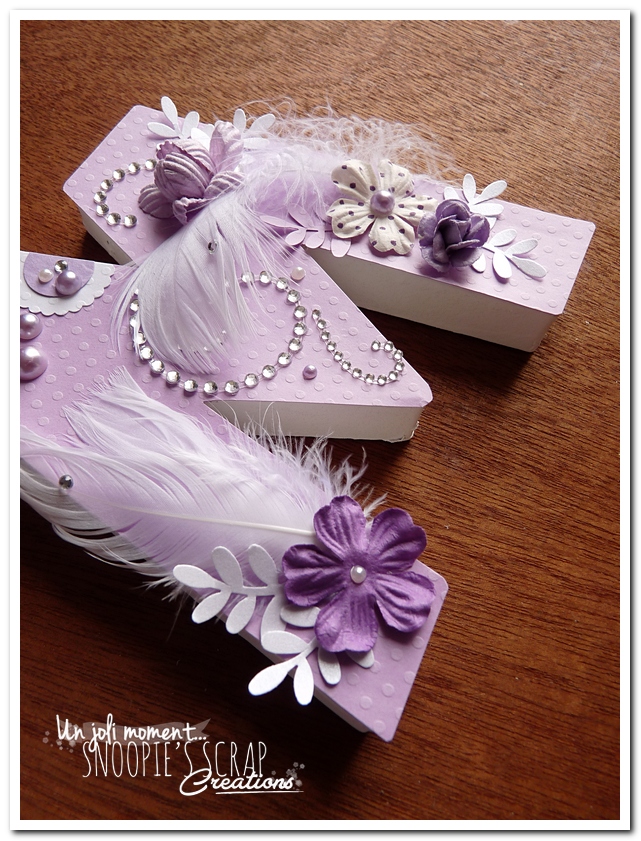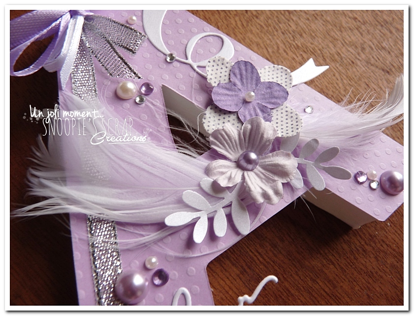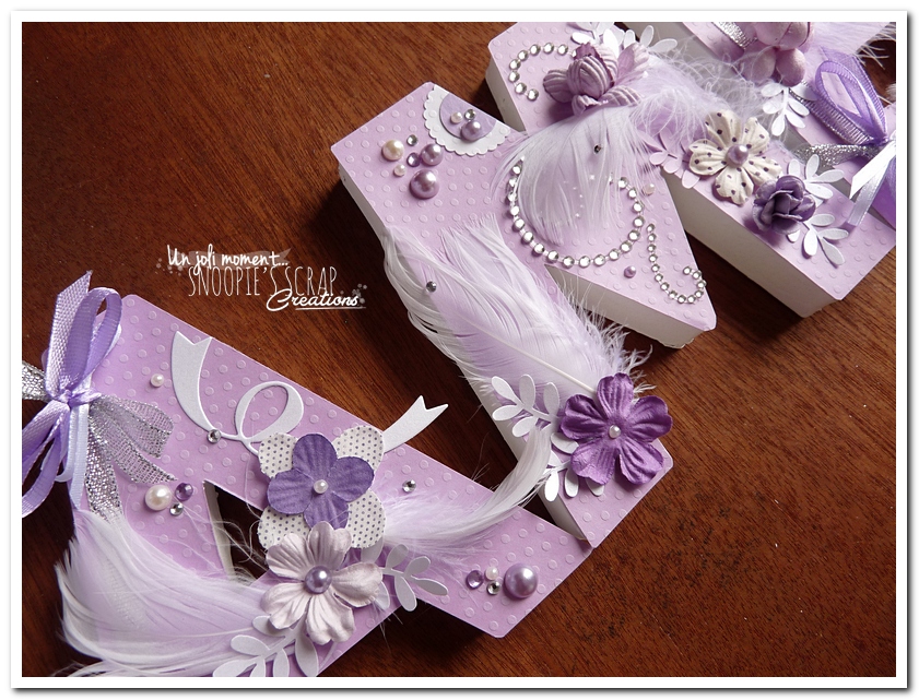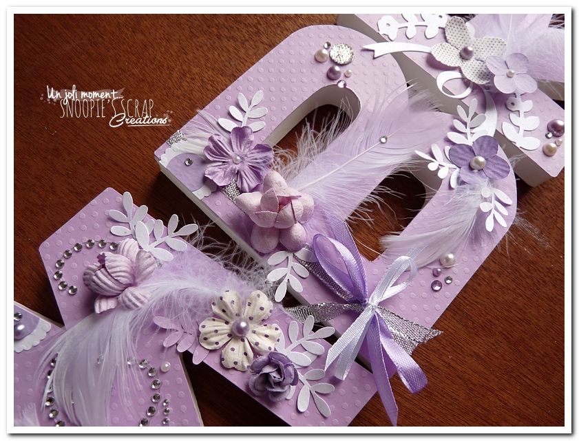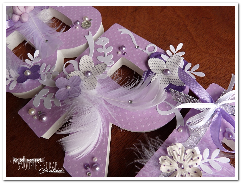 je continue avec le prénom d’Ambre, décoré dans des tons de parme & blanc.