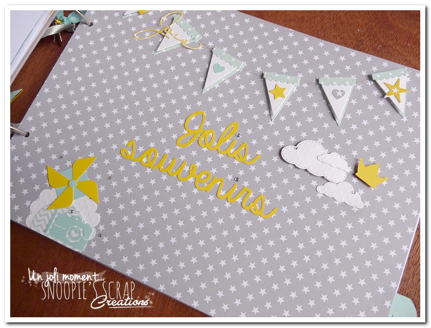 Baptême, anniversaire, 2ans, Bapt’iversaire, Gabriel, valise, urne, tirelire, boîte souvenirs, livre d’or, album photos, onglets, stylo décoré, jaune, menthe vert d’eau, turquoise clair, blanc, gris, étoiles, moulin à vent, pois, chevrons, garçon.