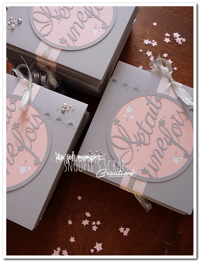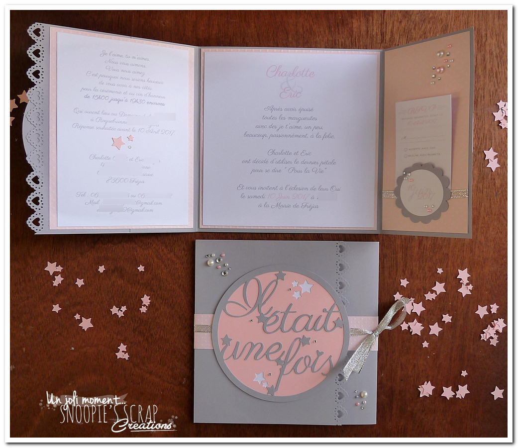 Ils souhaitaient un faire-part rond au départ, du moins avec 3 ronds comme on en voit beaucoup, avec l’intitulé « il était une fois » sur le 1er.