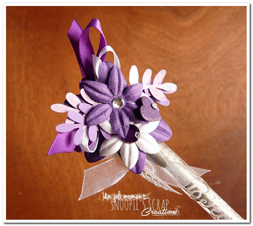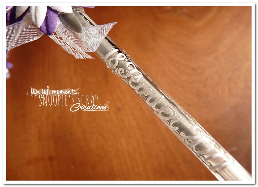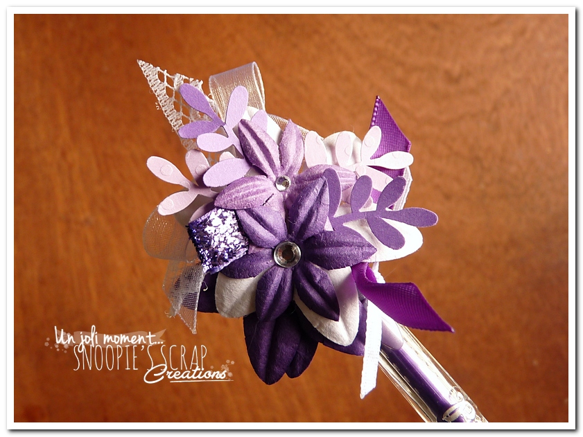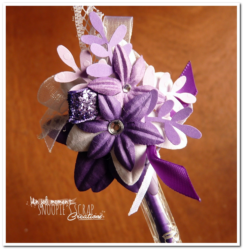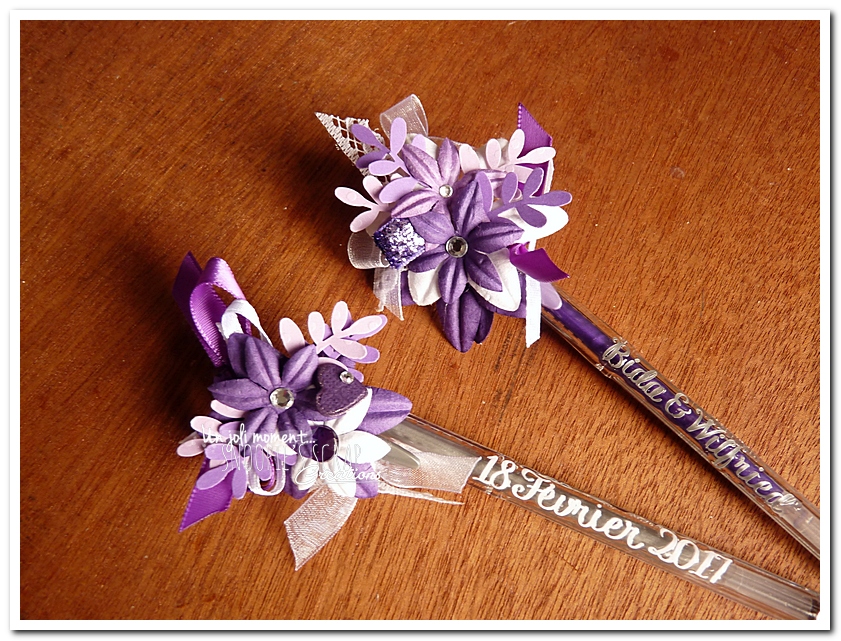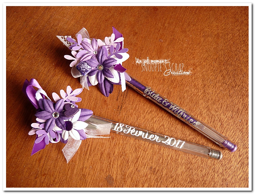 Je n’aurais jamais eu l’idée de décorer des capuchons de style ! Tu réalises un travail magnifique ! Le livre d’or est très fin et élégant. Je l’aime beaucoup avec ses tons de violet !