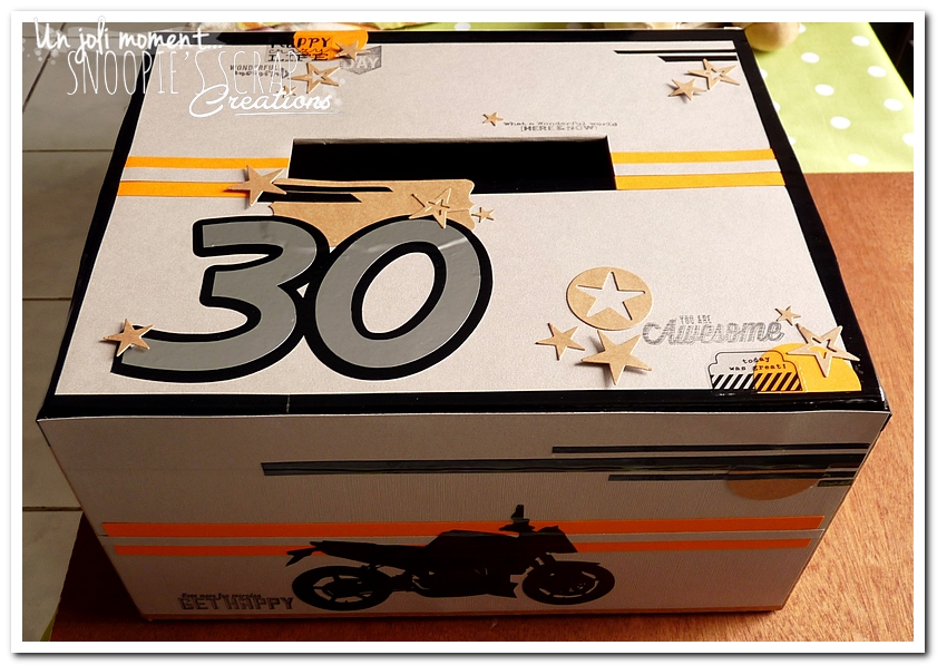 moto, bières, pièce montée, cadeau, gâteau de bière, 30, 30ans, 30 ans, idée cadeau homme, qu’offrir à un homme de 30ans, mon mari fête ses 30ans, fête anniversaire 30ans, yann, orange, noir, gris, argenté, homme, gars, soirée, party, birthday, 30th, urne 30ans, tirelire.