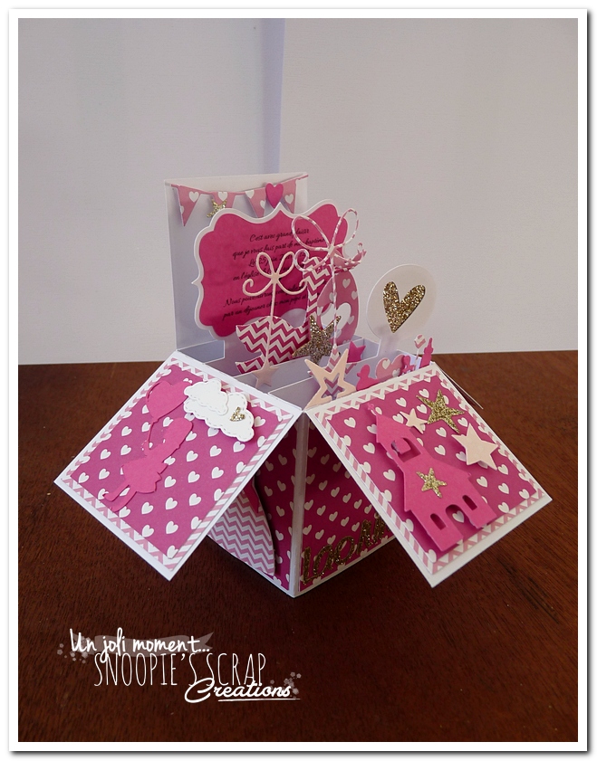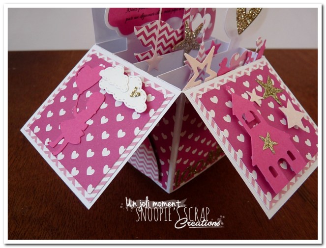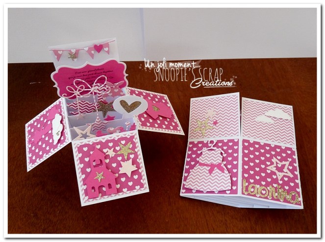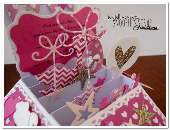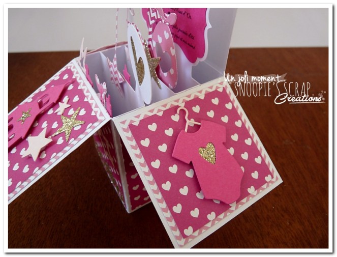 carte naissance pop-up, faire-part de naissance pop-up, boîte, faire-part original, vintage, garçon, fille, chevrons, pois, vert d’eau, bleu d’eau, jaune, kraft, sable, moustache, noeuds, étoiles. Laorina, or, doré, fushia, rose