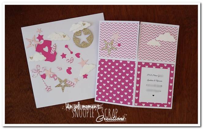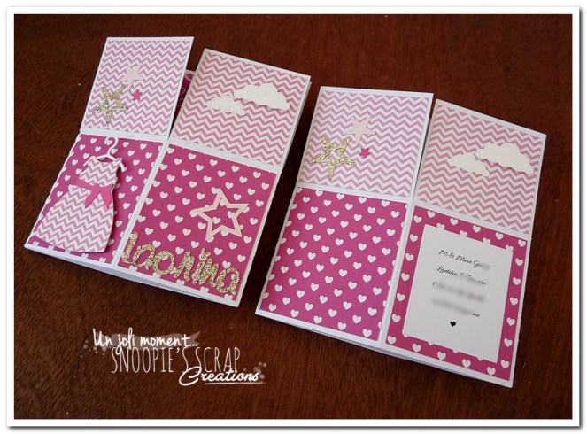 Sur le même principe et la même base que les faire-parts de naissance d’Hugo, voici les faire-parts de Baptême de Laorina.
