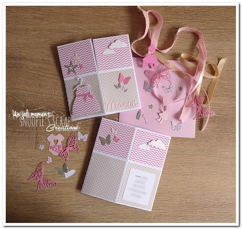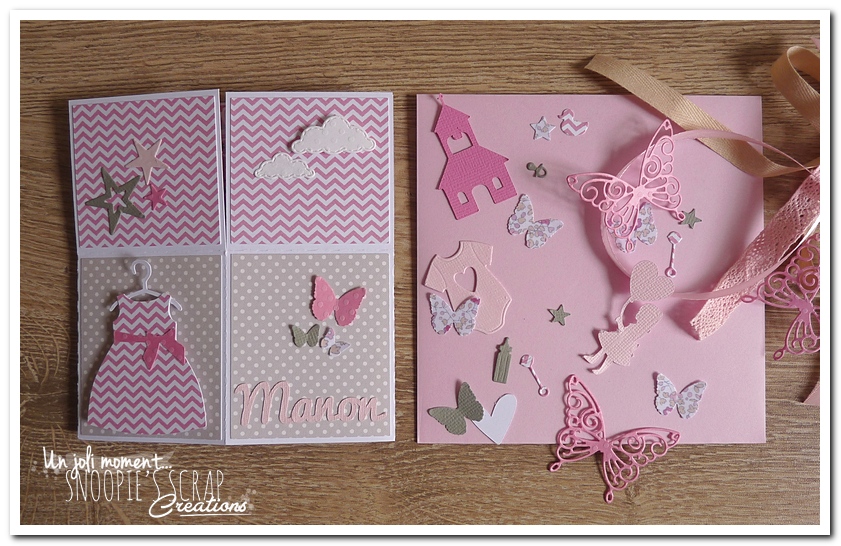 sur le même principe que ceux d’Hugo et surtout ceux de Laorina, voici les faire-parts de Baptême de Manon.
