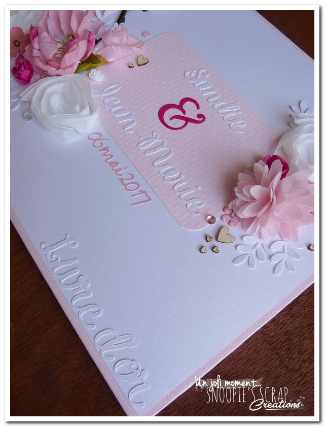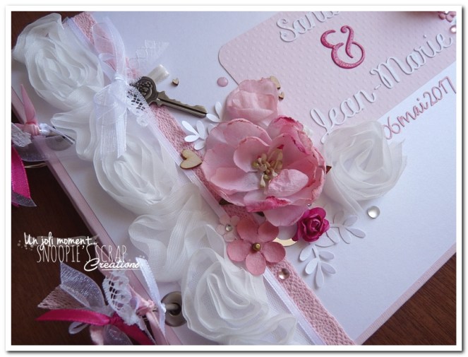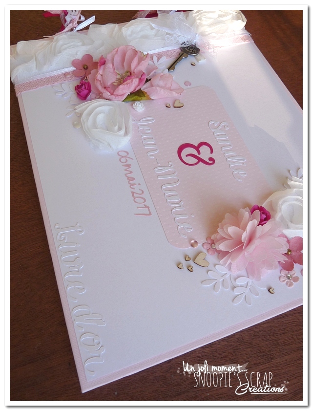 livre d’or mariage, strass, fleurs, romantique, rubans, blanc, rose, pâle, clair, fuchia, ushia, fuschia, mariage, fête, urne, tirelire, maison, boîte aux lettres, perles, douceur, sandie & jean-marie, mariage, wedding, urne, tirelire. FORMULE friendly