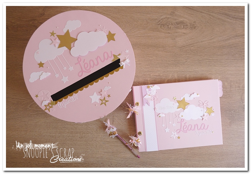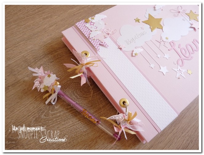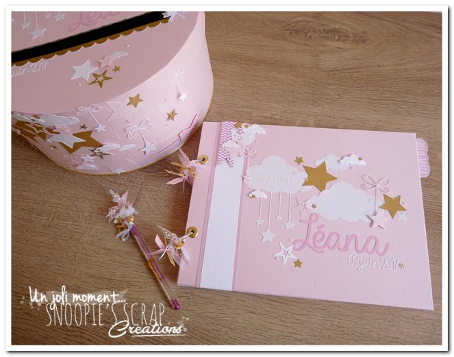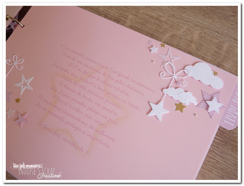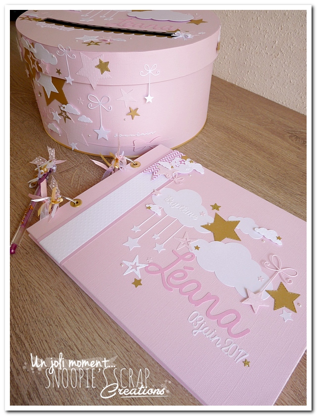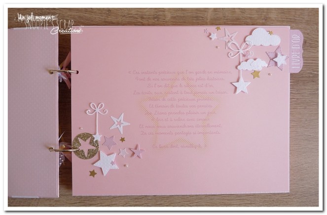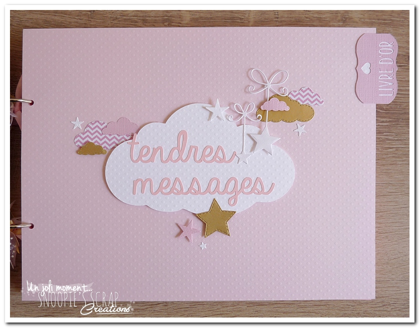 Voici un livre d’or, sur la même base que le livre de Manoa, mais avec des étoiles suspendues aux nuages, plus girly & plus épuré.