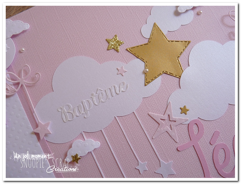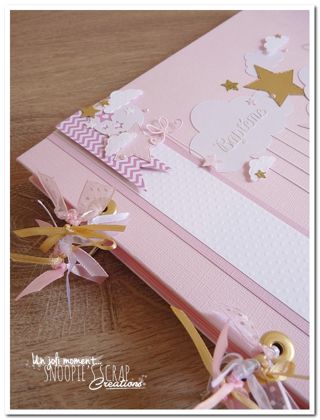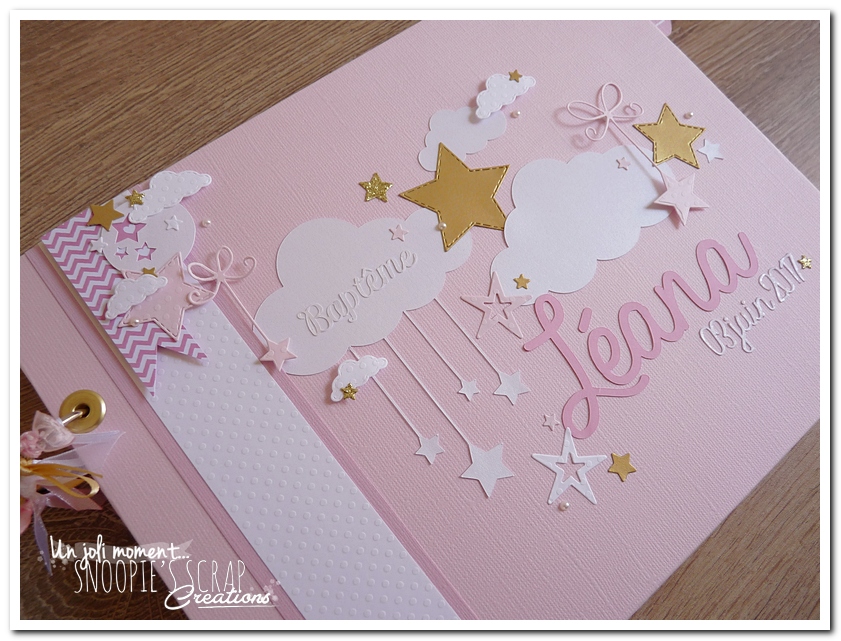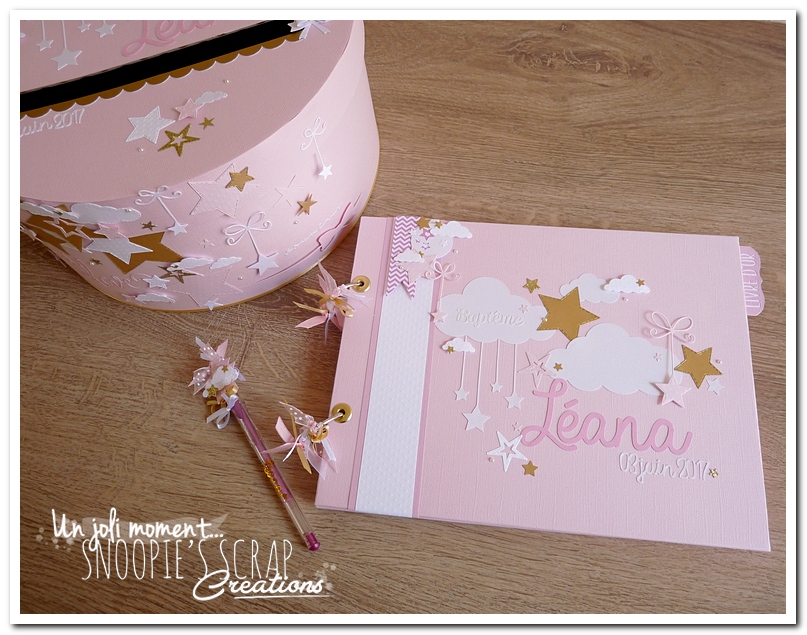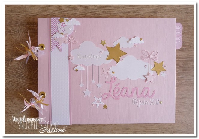 Baptême Manoa Léana Leana livre d’or, baptême, parrainage civil, mariage, pacs, rose, or, doré, blanc, nuages, rubans, fanions, étoiles.