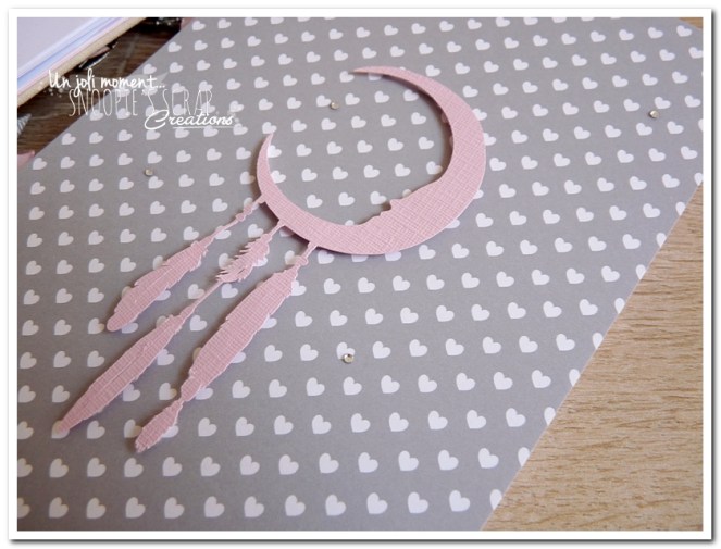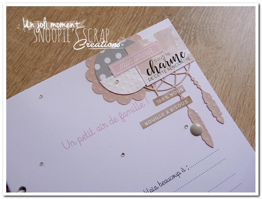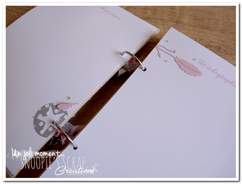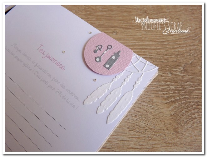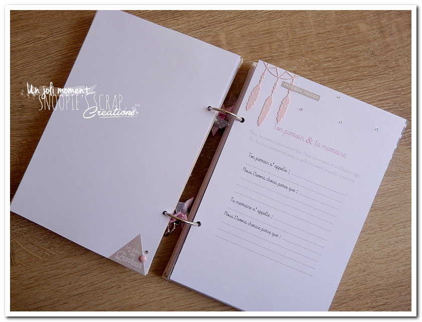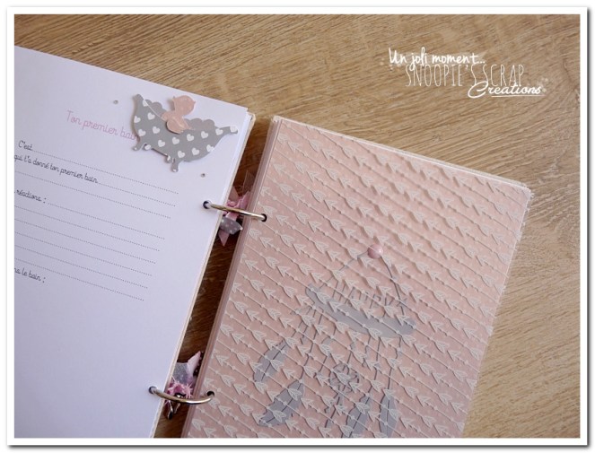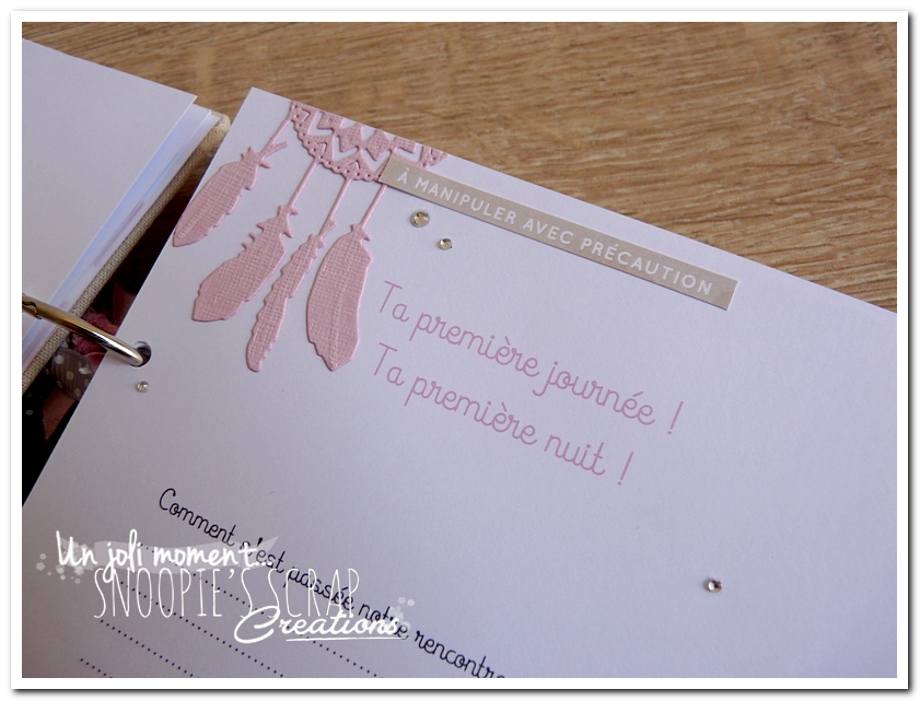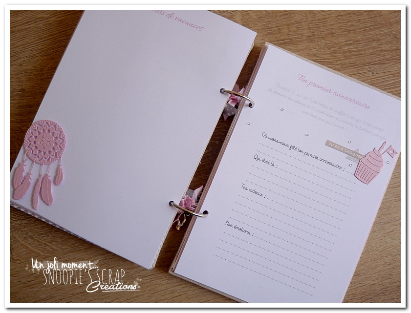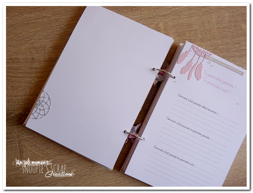 livre naissance, baptême, fille, bébé, album, cadeau naissance, album souvenir de naissance, plumes,bébé, rose , lin, gris , vieux rose, dreamcatcher, dream catcher, attrape rêves, attrape-rêves – livre naissance Aria.