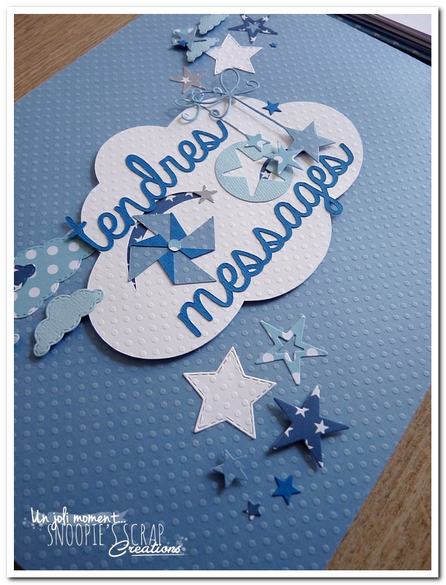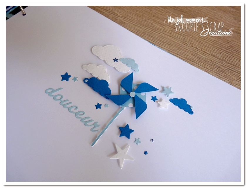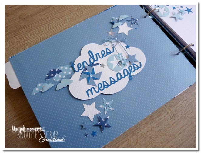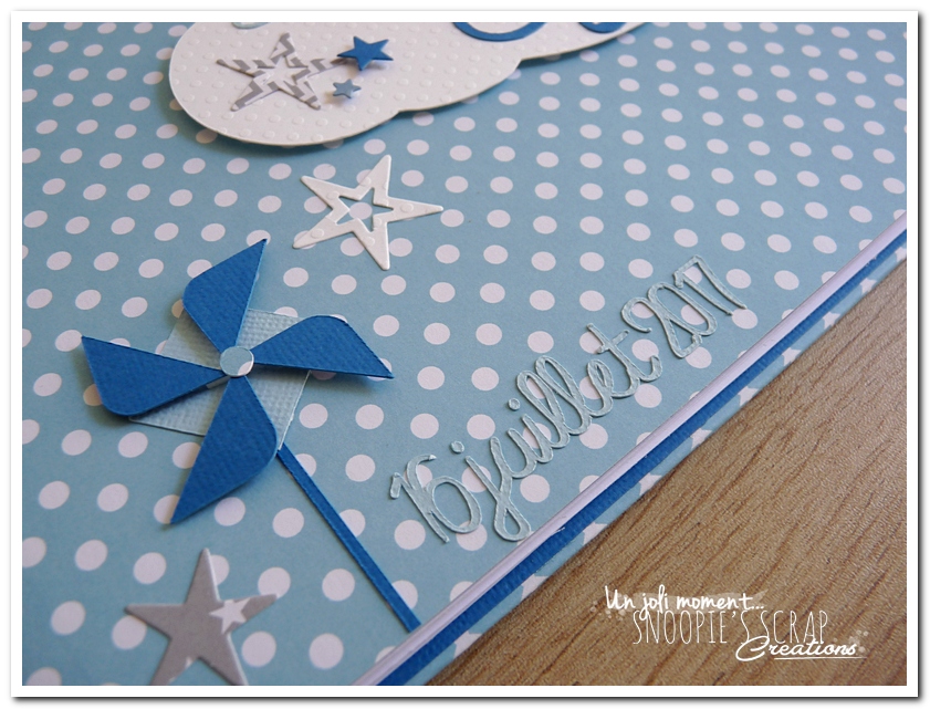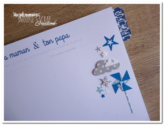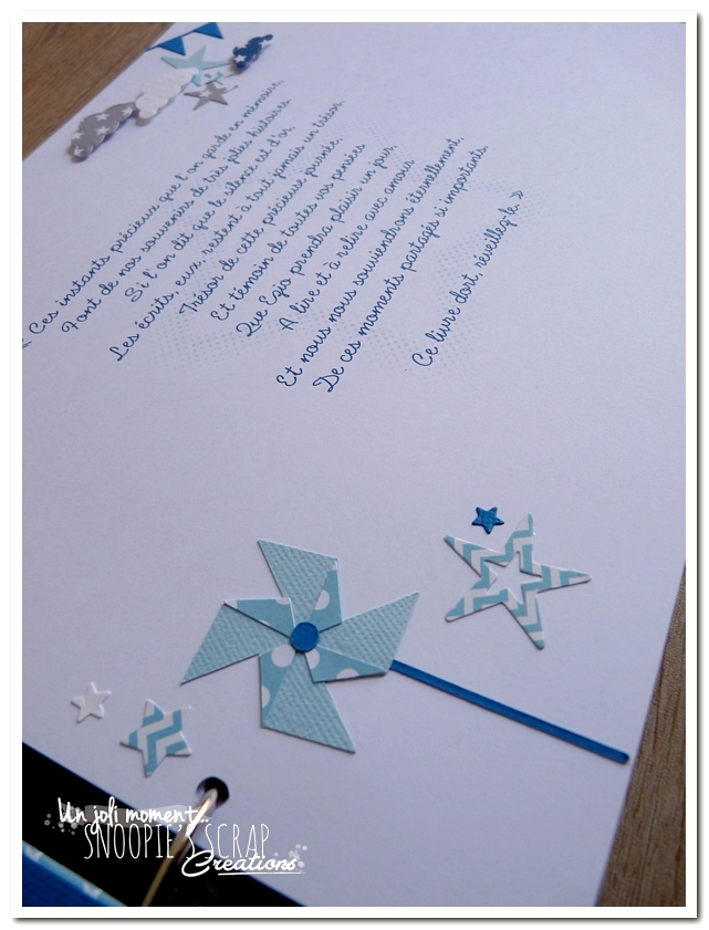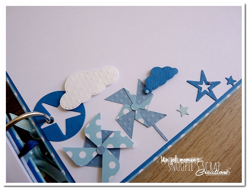 Baptême Manoa Ezio livre d’or, baptême, parrainage civil, mariage, pacs, bleu clair, bleu roi, bleu dur, blanc, jaune, nuages, rubans, fanions, étoiles, moulins à vent, mongolfières.