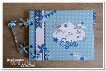 Baptême Manoa Ezio livre d’or, baptême, parrainage civil, mariage, pacs, bleu clair, bleu roi, bleu dur, blanc, jaune, nuages, rubans, fanions, étoiles, moulins à vent, mongolfières.