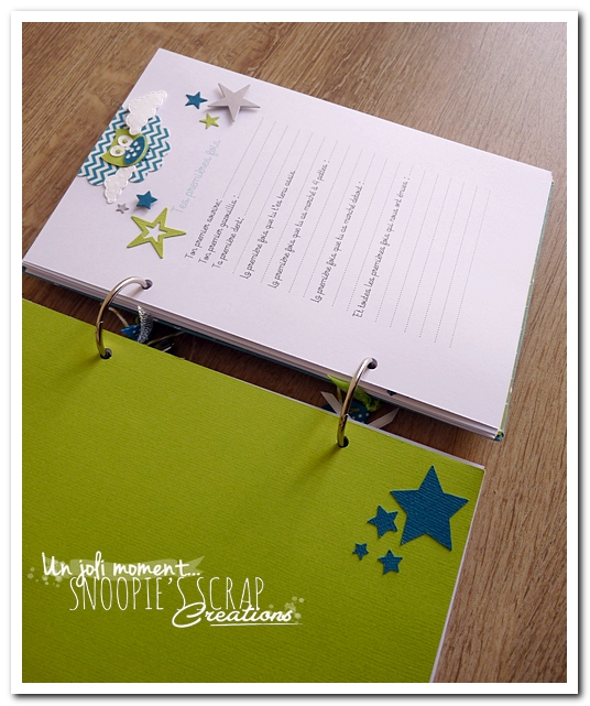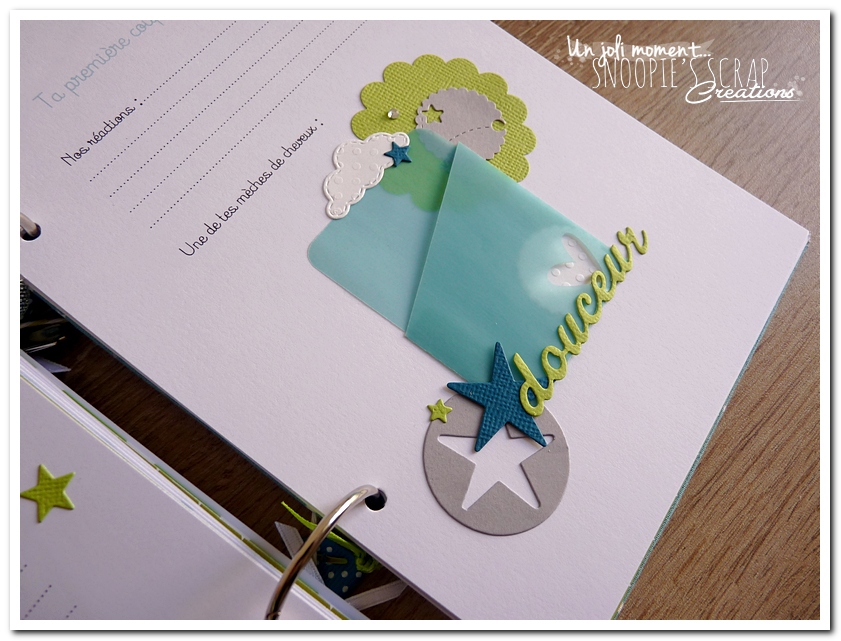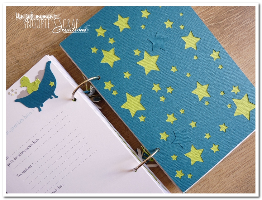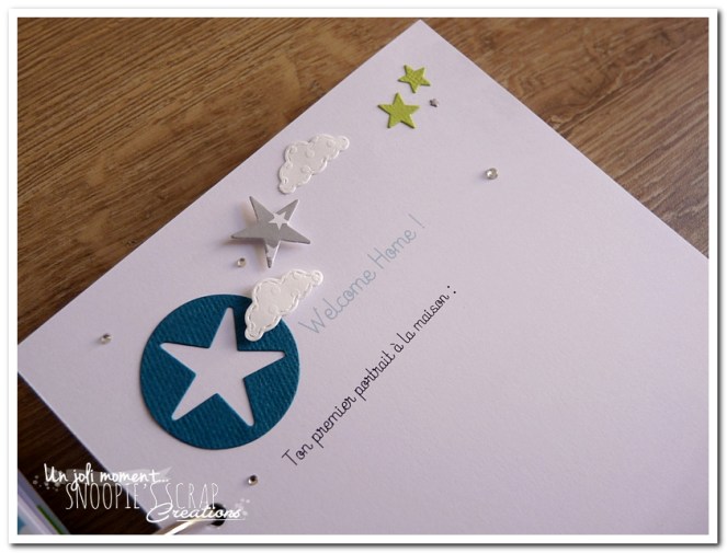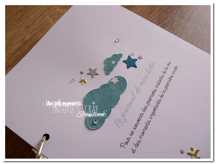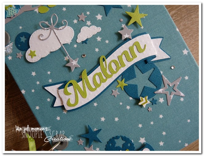 livre de naissance, cadeau de naissance, baby shower, album photo, souvenirs de naissance, maternité, blanc, gris, étoiles, nuages, mongolfière, noeud, Sacha, bleu canard, Malonn, bleu pétrole, vert anis.