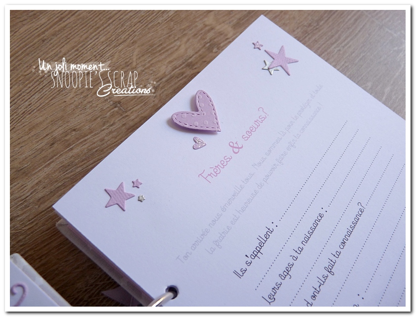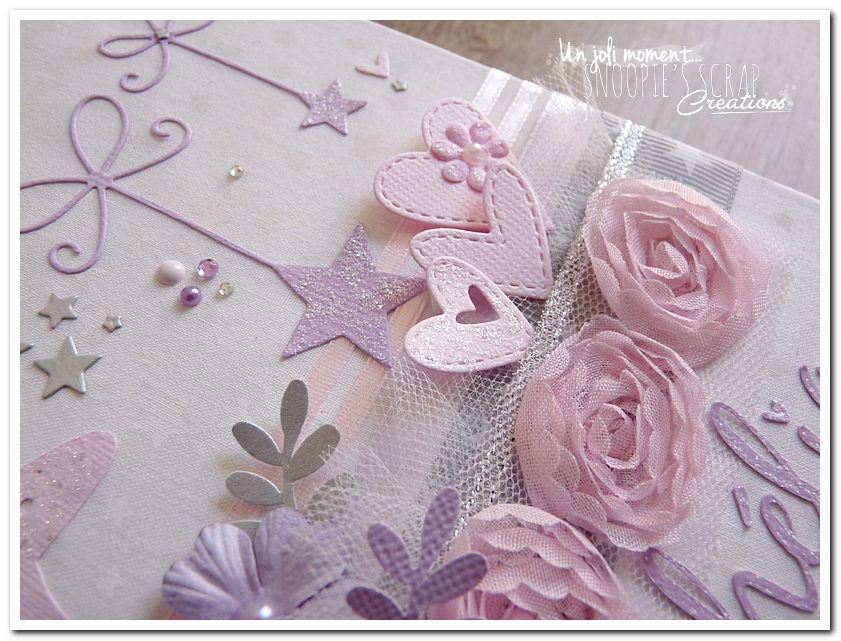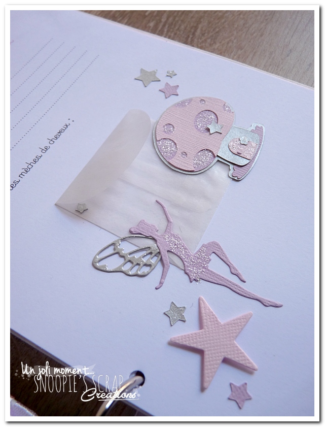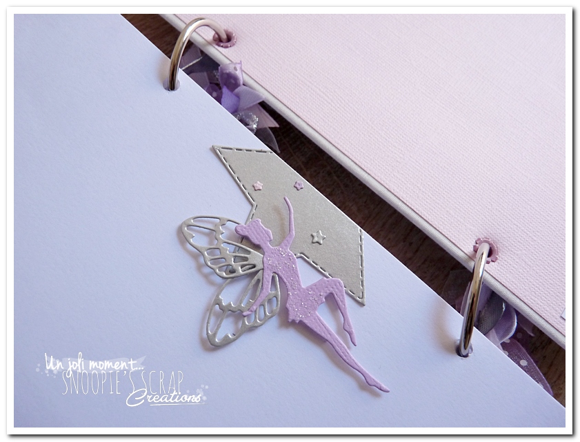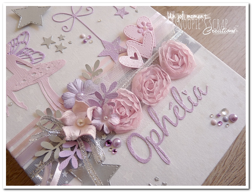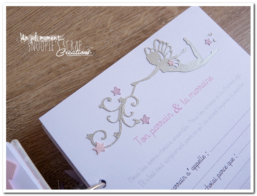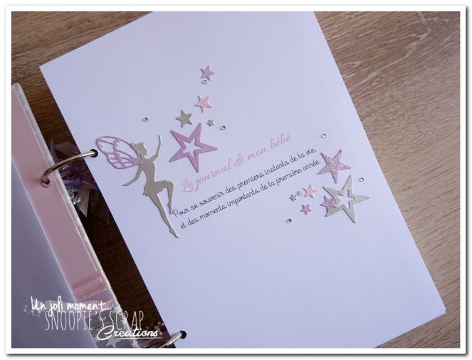 livre naissance, baptême, fille, bébé, album, cadeau naissance, album souvenir de naissance, bébé, gris , rose, livre naissance Ophélia, fées, noeuds, coeurs, étoiles, parme, argent.