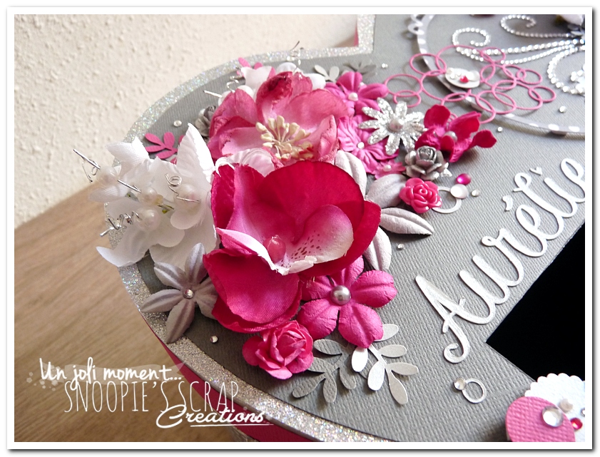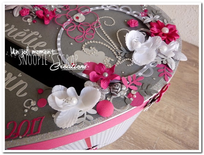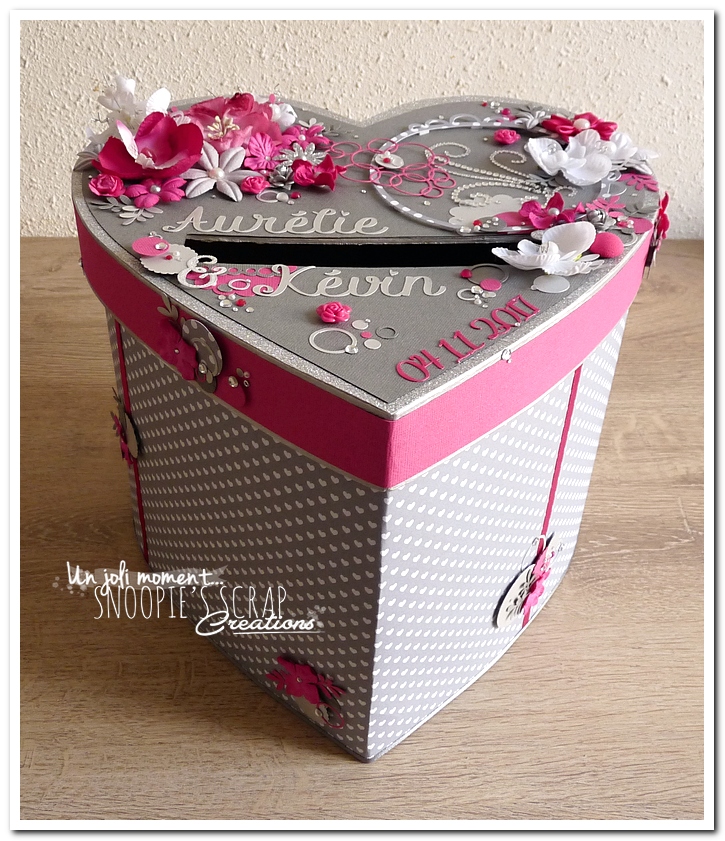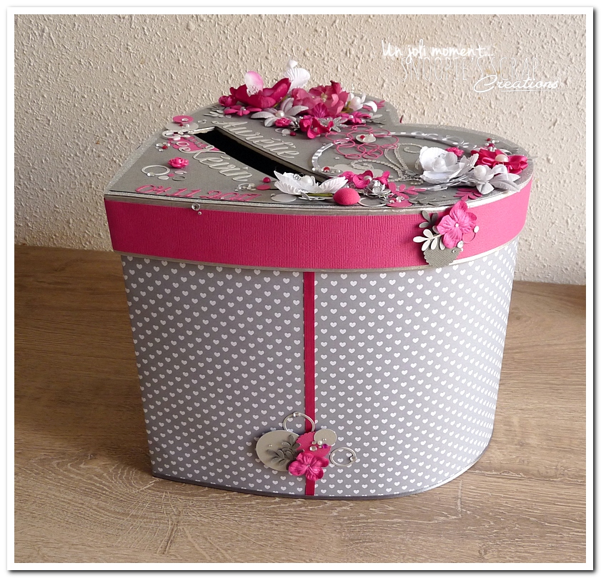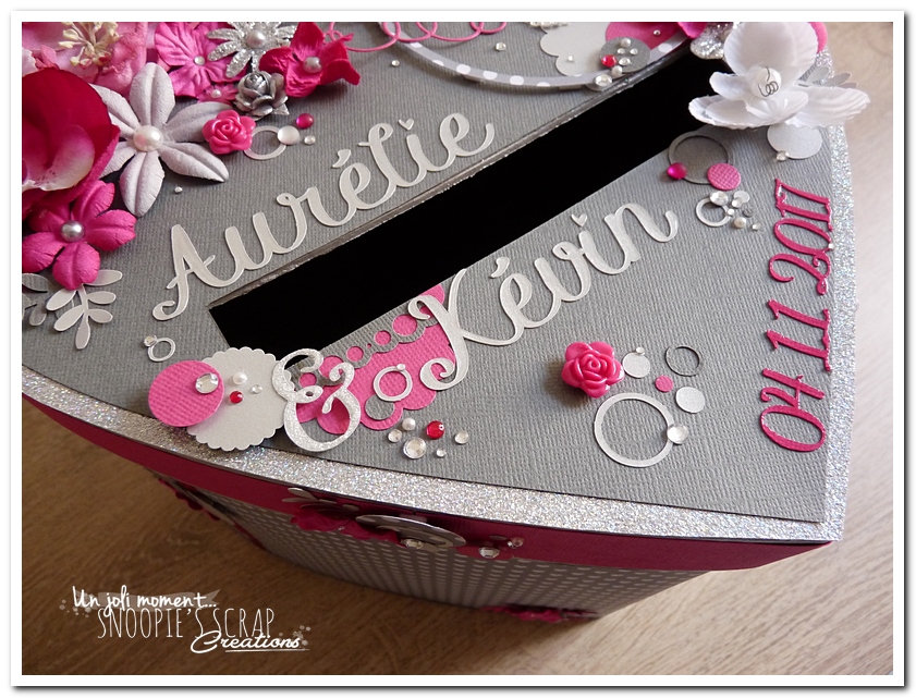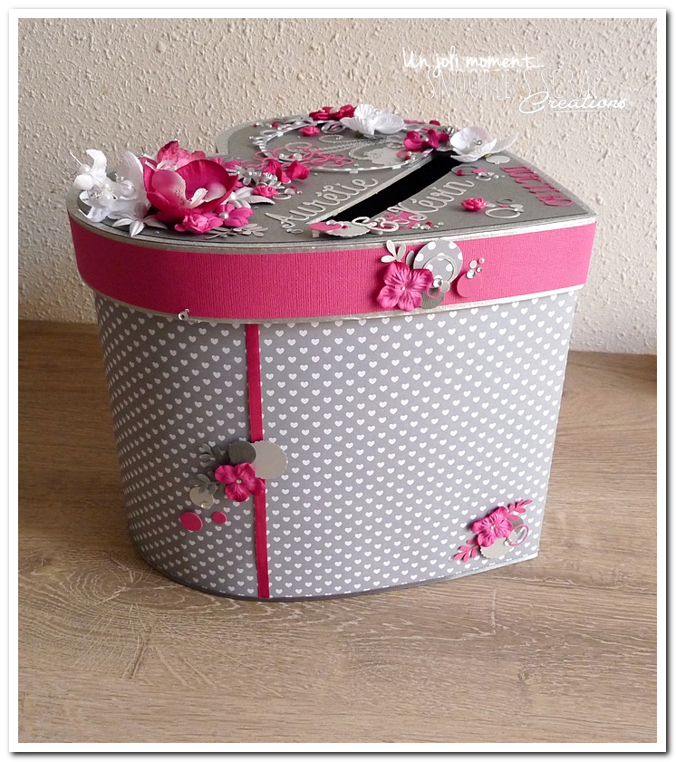 mariage Aurélie & Kévin , fleurs & bulles, orchidées, fushia & blanc, touche argent & gris anthracite, wedding, white, grey, fushia, fuchsia, fuchia, fuschia, rose, fleurs, flowers, pois, ronds, anneaux, urne coeur, boîte à sous, boîte à voyage de noces, tirelire – A&K coeur haut