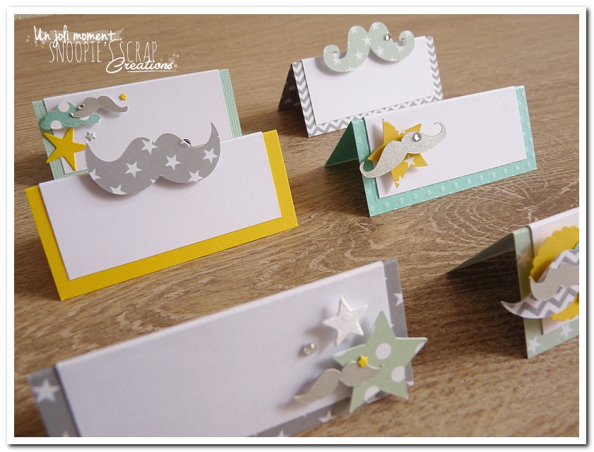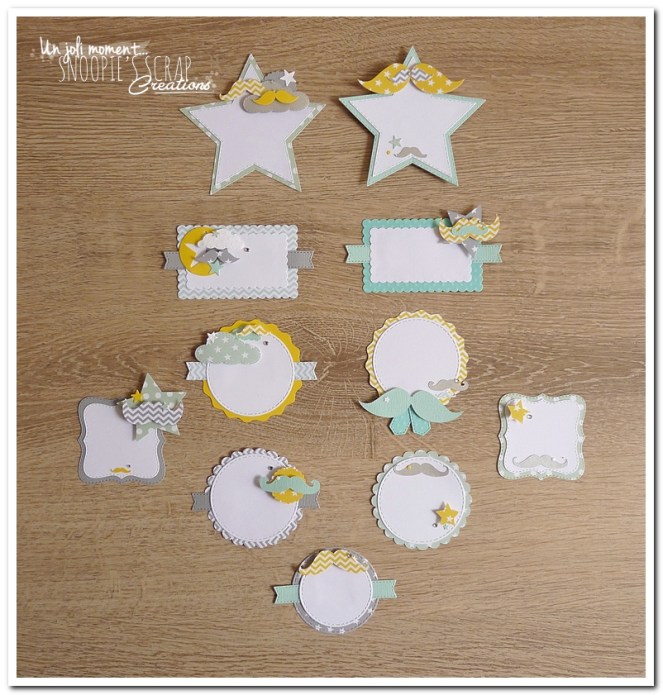 Baptême, parrainage civil, candy Bar, confettis de table, étiquettes à dragées, étiquettes, porte-nom, marque-place, papeterie et décoration de table, souvenirs, aqua, jaune, menthe vert d’eau, turquoise clair, blanc, gris, étoiles, moustache, mustache, Augustin, pois, chevrons, garçon.
