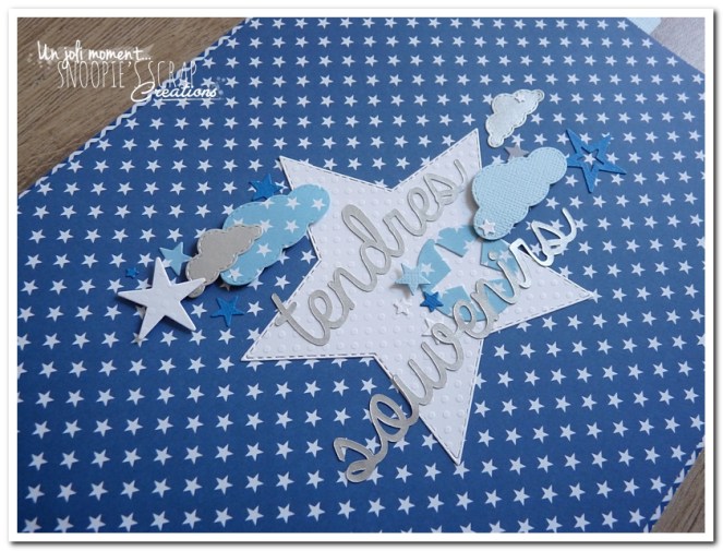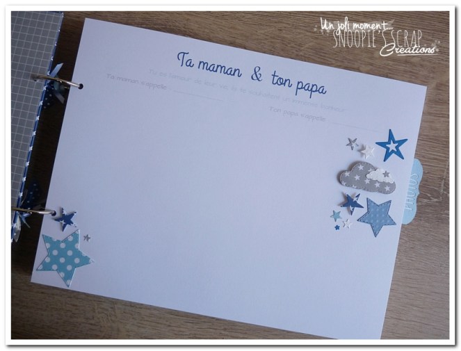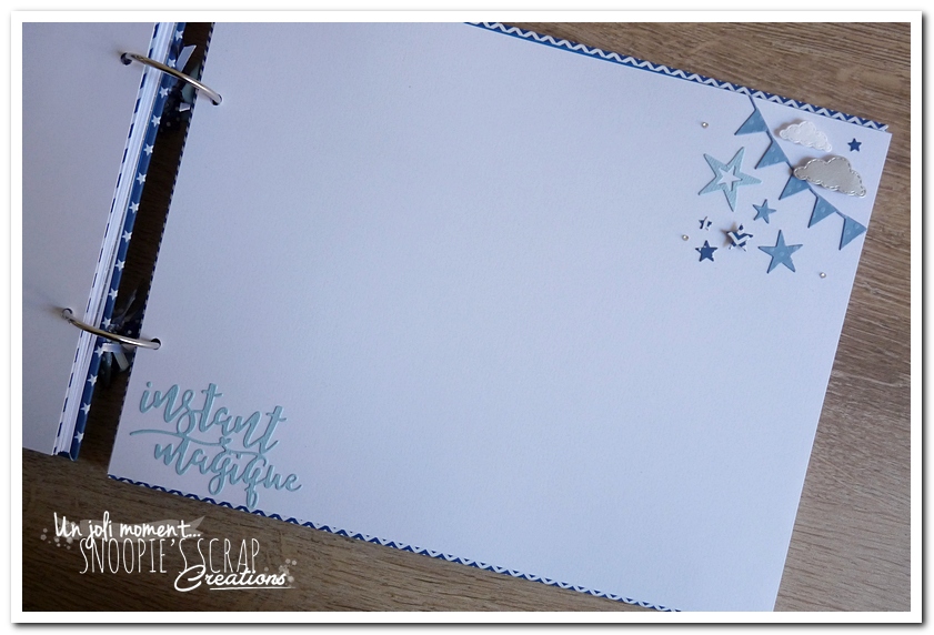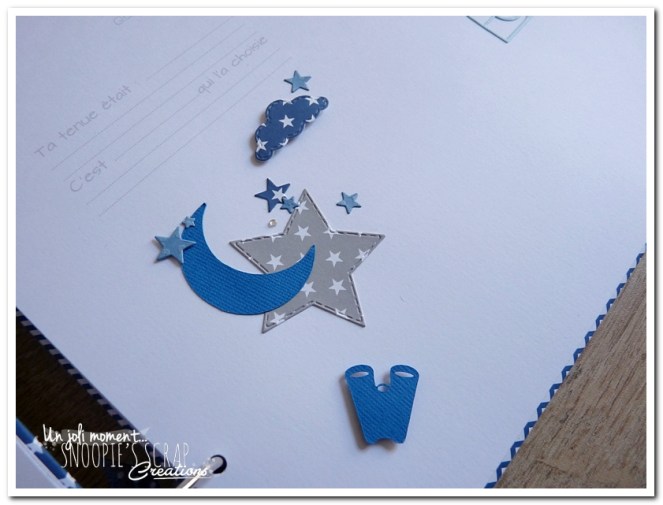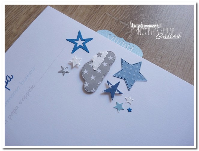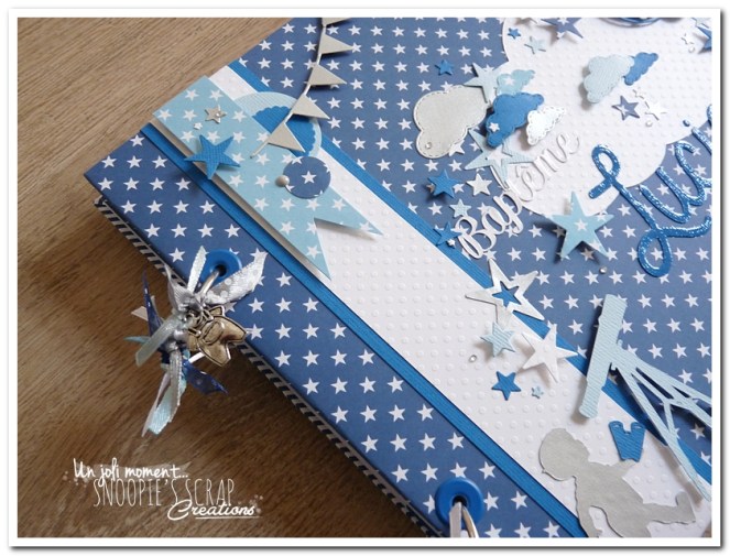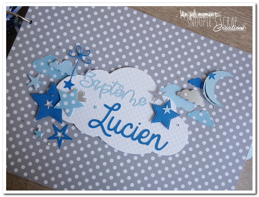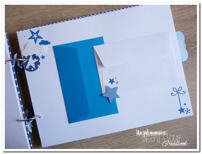 Baptême Manoa Léana Leana livre d’or, baptême, parrainage civil, mariage, pacs, argent, bleu ciel, bleu pâle, bleu clair, turquoise, argent, gris, blanc, nuages, rubans, fanions, étoiles, lune, ciel, Ninon, Lucien, astronomie, jumelles, télescope…