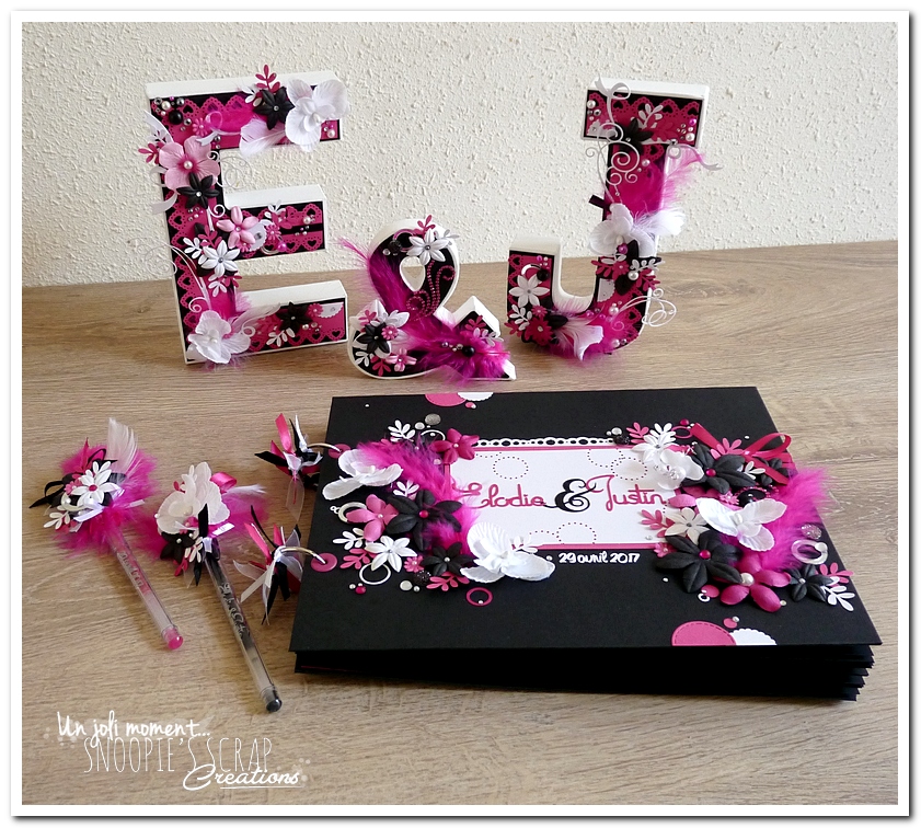 je termine par le livre d’or d’Elodie & Justin, assorti aux initiales & stylos,