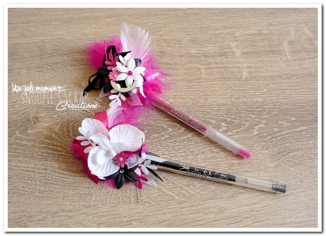 fleurs & bulles, orchidées, wedding, white, fleurs, flowers, pois, ronds,stylos personnalisés & décorés, mariage,Elodie & Justin, wedding book,blanc, noir & fushia, fuchsia, fuchia, fuschia, rose, ruban, strass, arabesques, plumes, romantique, chic, baroque.