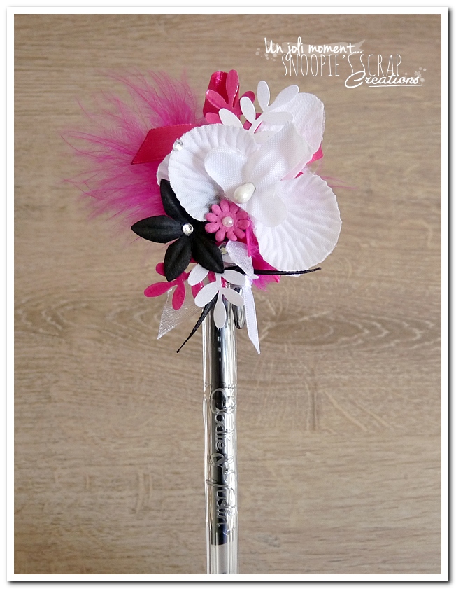 fleurs & bulles, orchidées, wedding, white, fleurs, flowers, pois, ronds,stylos personnalisés & décorés, mariage,Elodie & Justin, wedding book,blanc, noir & fushia, fuchsia, fuchia, fuschia, rose, ruban, strass, arabesques, plumes, romantique, chic, baroque.