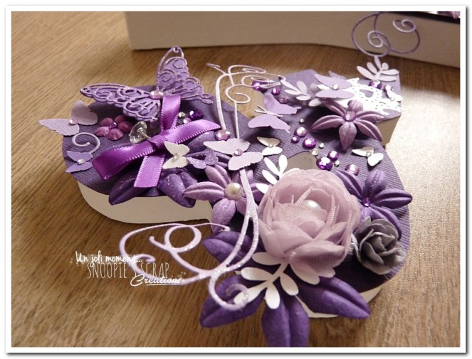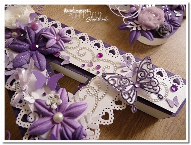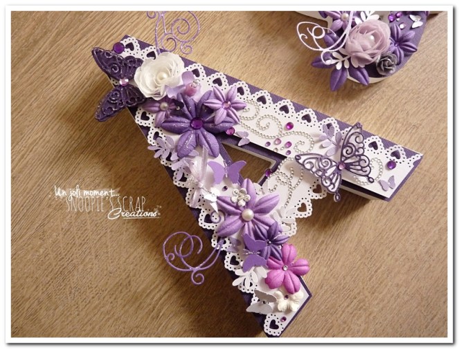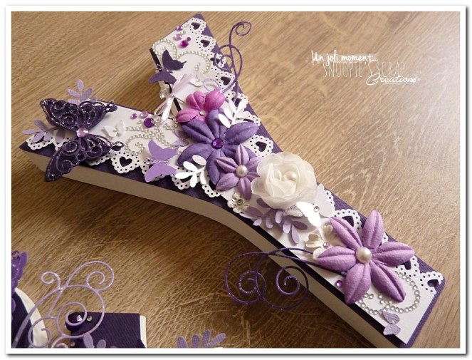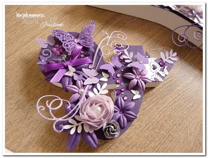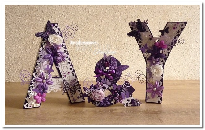 initiales, lettres, décorées, strass, perles, fleurs, parme, blanc, argent, feuillage, dentelle, coeurs, adeline & yannick, violet.