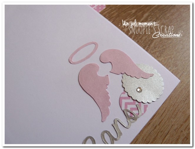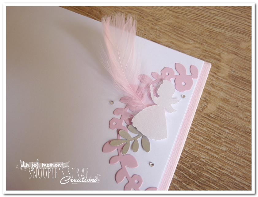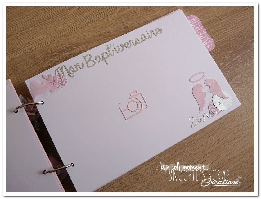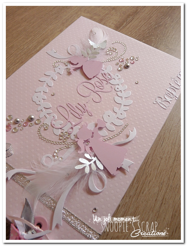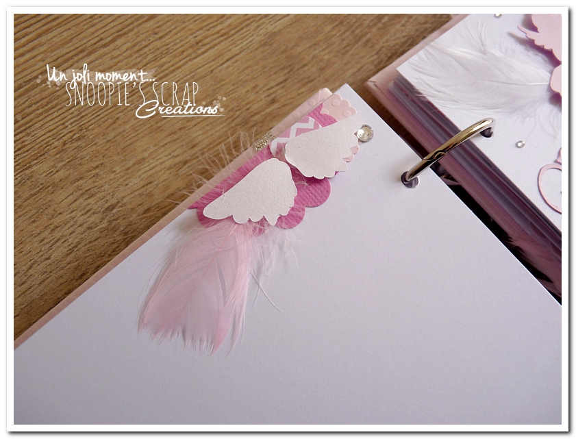 livre d’or, Baptême , Lily-Rose, parrainage civil, anniversaire, anges, rose, gris, argent, blanc, irisé, paillettes, strass, plumes, arabesques.A5