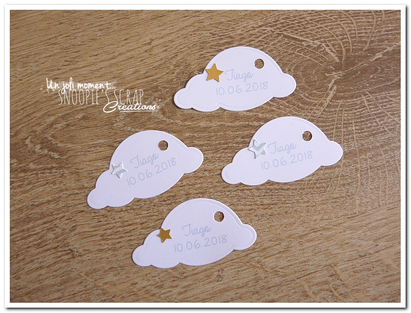 voici les étiquettes pour support à dragées (ici c’était des petits avions transparents) assortis au reste.