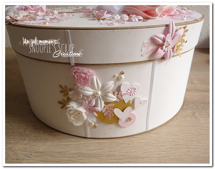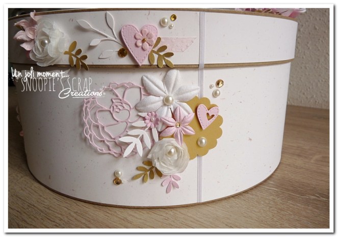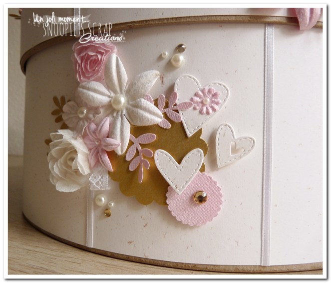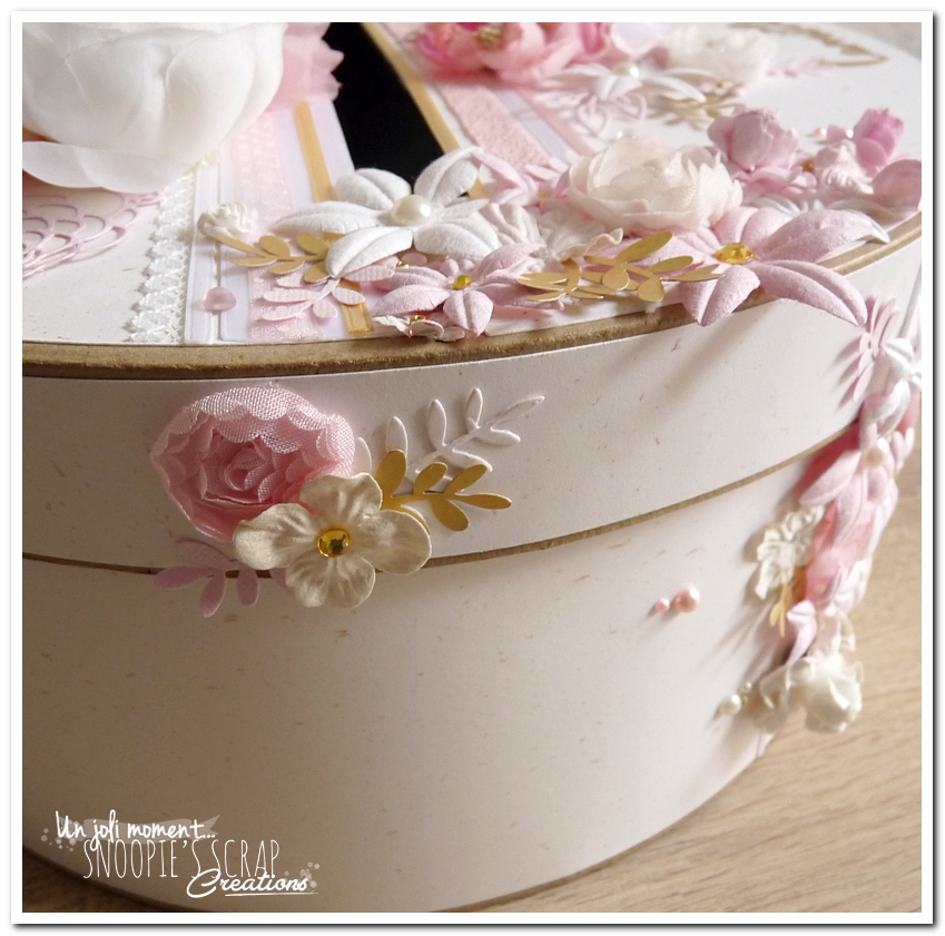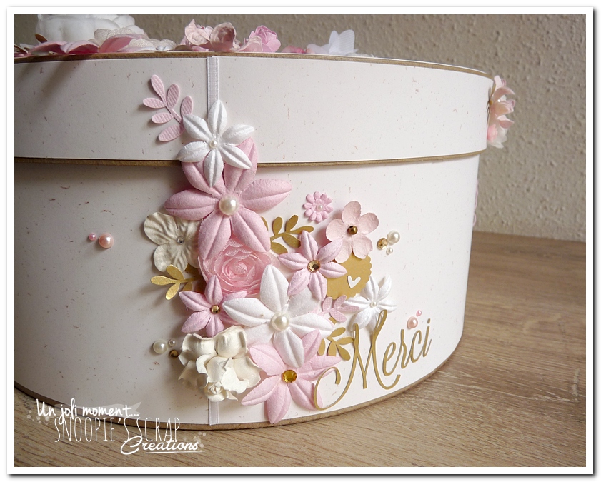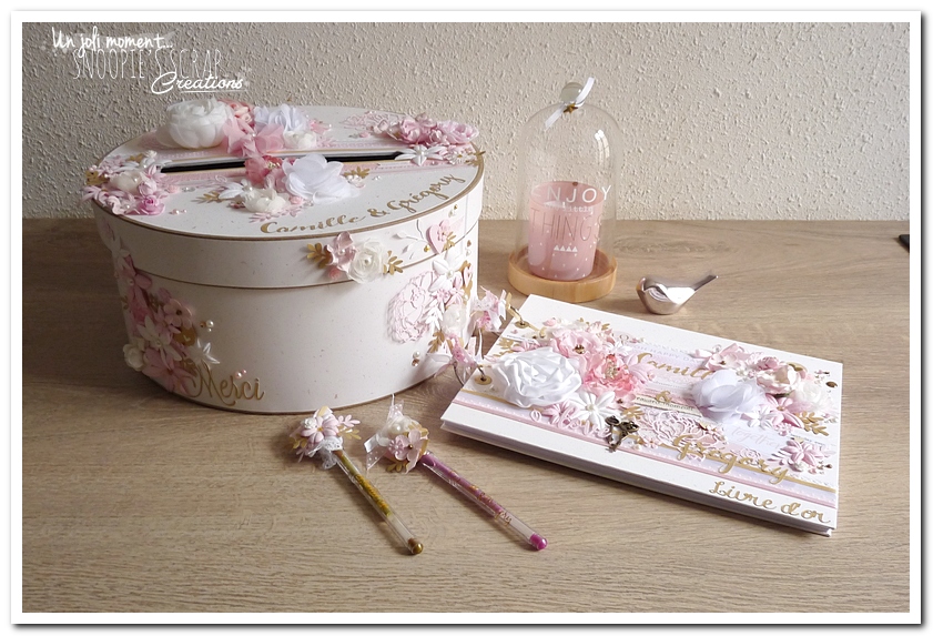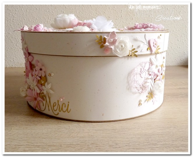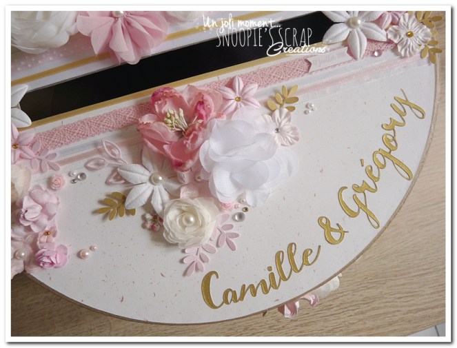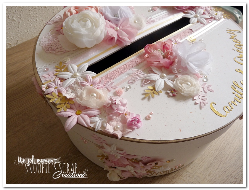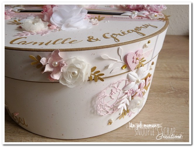 tirelire, boîte à rêves, boîte voyage, voyage de noces, honymoon, urne mariage, vintage, ronderétro, dentelle, clés, métal, serrure, rubans, fleurs, doux, rose pastel, blanc cassé, romantique, romantique chic, fleuri, rose, blanc, doré, or, Camille & Grégory.