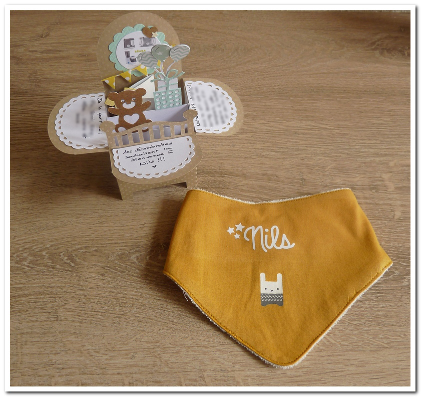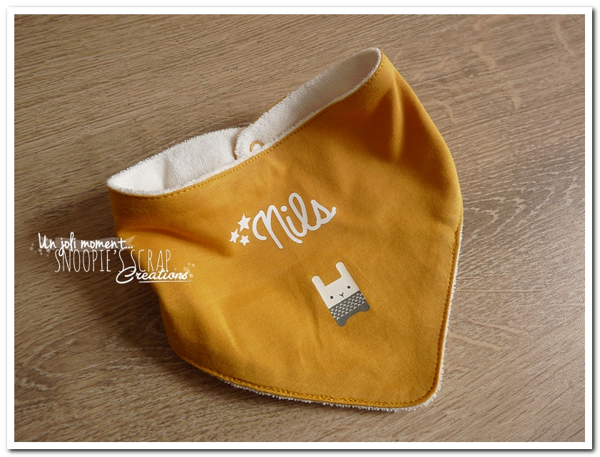 Et en plus un petit bavoir personnalisé (juste le prénom & étoiles, le motif était déjà présent).
