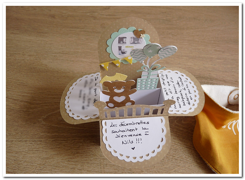 Pour l’occasion, j’ai créé une carte – boîte (pour lui offrir un chèque-cadeau groupé avec d’autres amies).