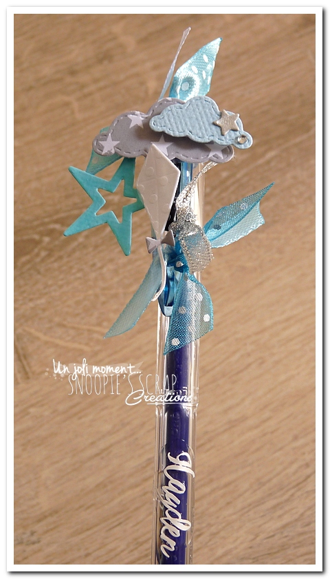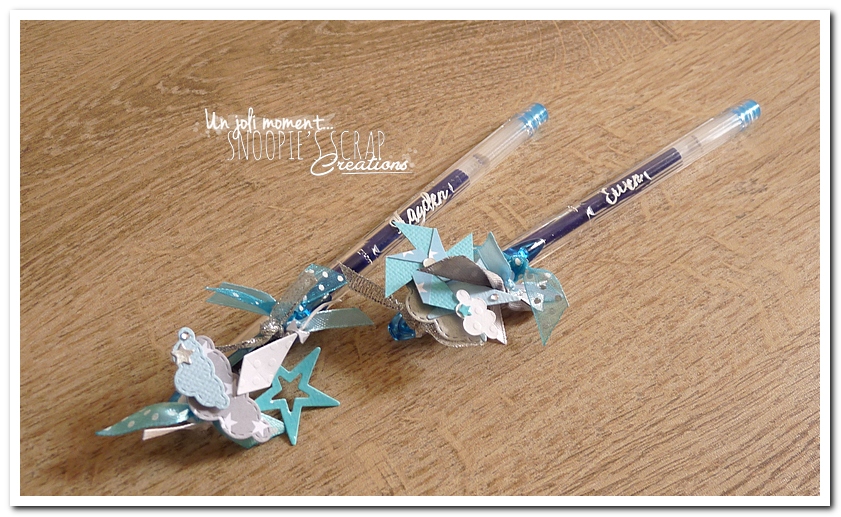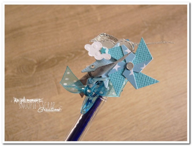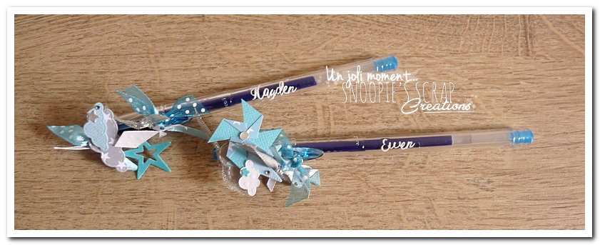Baptême, anniversaire, Bapt’iversaire, livre d’or, stylo décoré, bleu clair, argent, turquoise clair, blanc, gris, étoiles, moulin à vent, pois, chevrons, garçon, montgolfière, aqua, Hayden & Ewen.