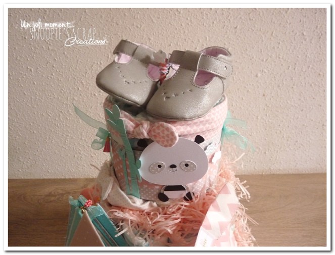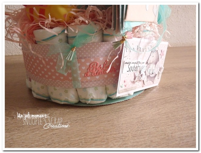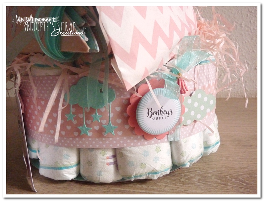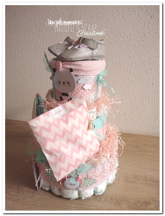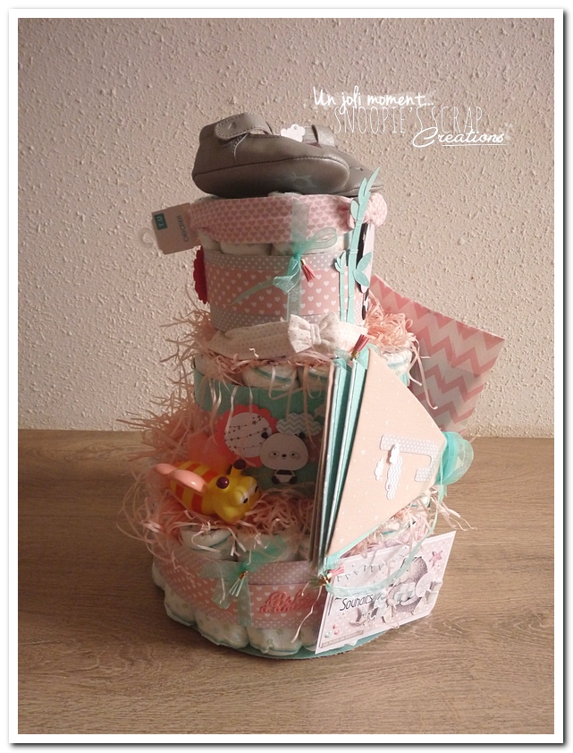 Nous n’avons pas voulu défaire le gâteau de couches. Il fait parti de la décoration de la chambre de notre petite Julie depuis plus de 2 ans à présent!