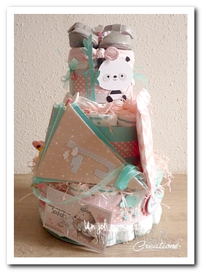 Nous n’avons pas voulu défaire le gâteau de couches. Il fait parti de la décoration de la chambre de notre petite Julie depuis plus de 2 ans à présent!